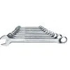 - Set of 10 stubby ratcheting combination spanners made of chrome vanadium steel.