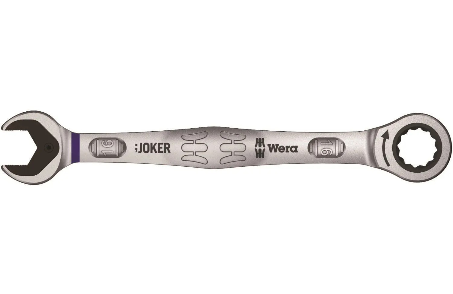 The Wera Joker Ratcheting Open End Combination Spanner does everything a wrench has to do, and a whole lot more. Wera have incorporated a hardened metal gripping stop plate on the head of the Joker which serves a number of purposes. Firstly it carries out a holding function to ensure that nuts and bolts are held in the jaw and can be easily positioned where they are needed, bringing an end to dropped nuts or bolts. The fastening of the nut or bolt can then be carried out quickly and safely thanks to the stop-plate that holds the fastener in place.